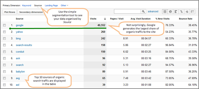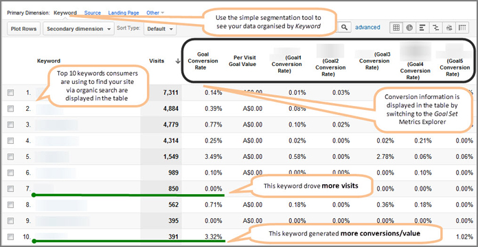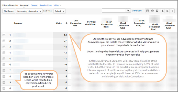TIP: Utilise Advanced Segments to focus your analysis on the segment of organic traffic which produced conversions