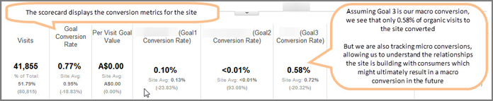 If we think about the aim of SEO (aside from achieving top rankings for your target keywords) as driving qualified consumer traffic to your site in order to generate sales or sales leads for your business, you start to clearly see where you are headed with your analysis. We are interested not only in the traffic that is arriving at your site, but also in the quality of this traffic, as measured by the conversion rate.