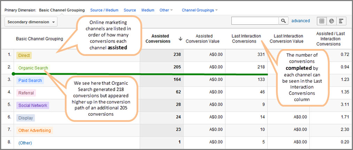 This report may be quite revealing. Organic search could be contributing to conversion performance in a much greater capacity than first thought. Or perhaps there are other channels which have been hidden previously, that are playing a significant assist role and could be worth leveraging further.